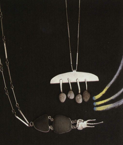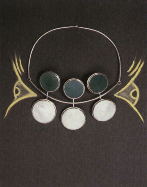 Silver with three agate discs and three mother of pearl discs